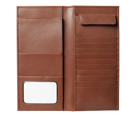 | fold closure | clear id window | pockets for passport, ticket, and travel documents | currency pocket | 10 card slots | removable traveler’s pocket